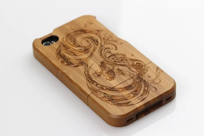 Coque iPhone pour Grove, Portland,USA Coque d’iPhone en bambou gravé.Réalisée en collaboration avec Grove (Portland), USA.
