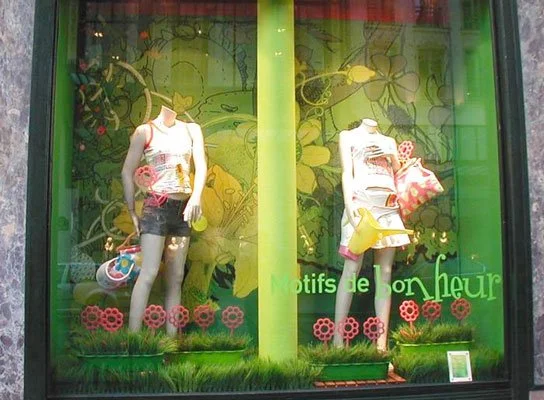 Déclinaison du visuel sur plusieurs supports, papiers peints et PLV. Campagne internationale d’affichage vitrine et PLV des boutiques de prêt-à-porter et lingerie.